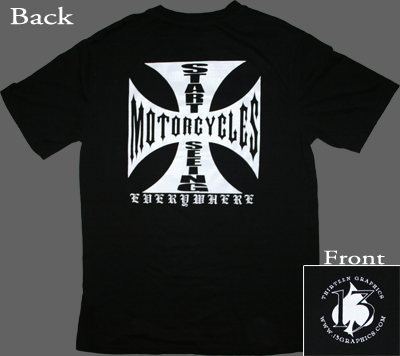 Whether their on their cell phones, texting the latest B.S. to some numbskull, or trying to wipe ketchup off the kid in the back seat's face, cagers always find a way to watch everything but the road. Send them the message, "START SEEING MOTORCYCLES, EVERYWHERE". You won't find this t-shirt in the malls, and you won't find it on any iron-on site. Screen printed in the U.S.A on high quality 100% cotton shirts.
